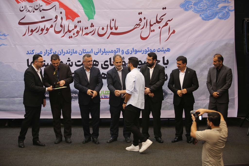 مراسم تجلیل از قهرمانان رشته موتورسواری و اتومبیلرانی مازندران در مجتمع سیمرغ محمودآباد برگزار شد.